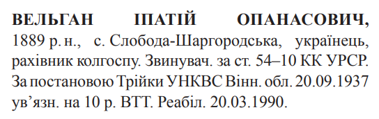 (Вельган Іпатій Афанасійович) Реабілітовані історією