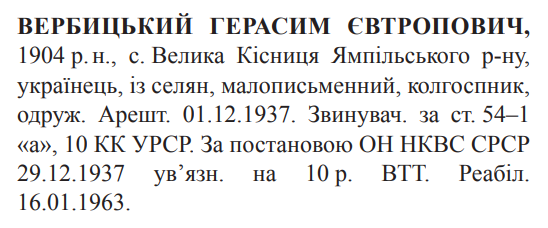 Реабілітований: Вінницьким облсудом 16.01.1963 Реабілітовані історією