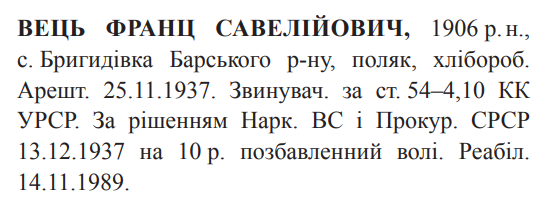 (Можливий варіант написання прізвища: Вєц) Реабілітовані історією