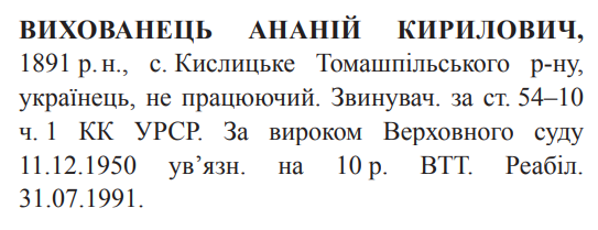 Реабілітований: Вінницькою облпрокуратурою 31.07.1991 Реабілітовані історією