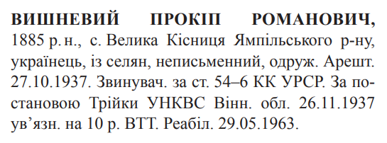 Реабілітований: Вінницьким облсудом 29.05.1963 Реабілітовані історією