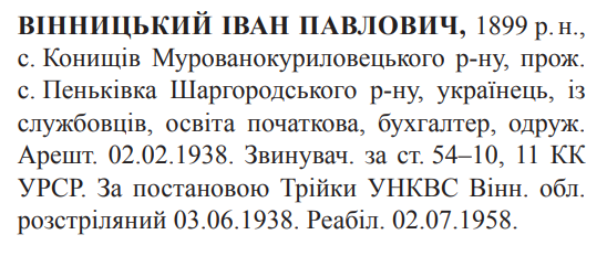 Реабілітований: Вінницьким облсудом 02.07.1958 Реабілітовані історією