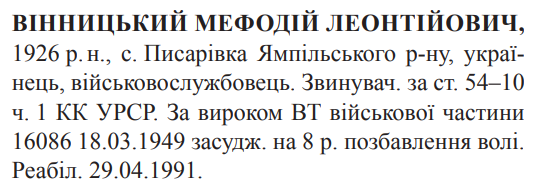 Реабілітований: Військовою прокуратурою Прикарпатського ВО 29.04.1991 Реабілітовані історією