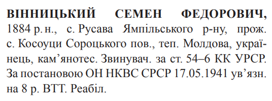 54-6 КК УССР. ОН НКВД СССР засуджений до 8 років ВТТ