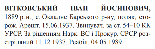 Реабілітований: Вінницьким облпрокурором 04.05.1989 Реабілітовані історією