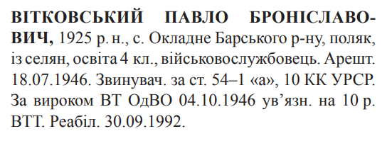 Реабілітований: Вінницькою облпрокуратурою 30.09.1992 Реабілітовані історією