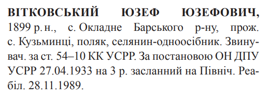 Реабілітований: Вінницькою облпрокуратурою 28.11.1989 Реабілітовані історією