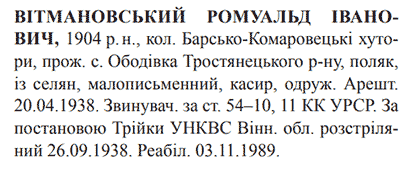 Ромуальд Вітмановський розстріляний 26.09.1938