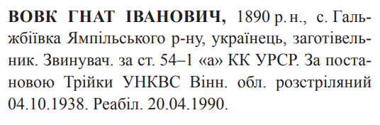 Гнат Вовк розстріляний 04.10.1938