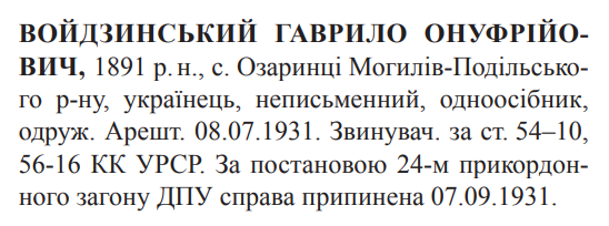54-10, 56-16 КК УССР. 24 Могилів-Подільським прикордонним загоном ДПУ справу припинено
