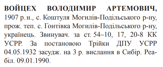 Реабілітований: Вінницькою облпрокуратурою 09.01.1990 Реабілітовані історією