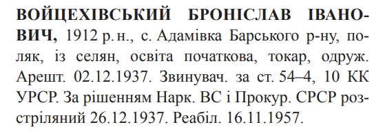 Броніслав Войцехівський розстріляний 26.12.1937