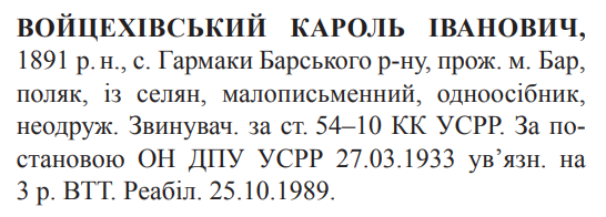 Реабілітований: Вінницькою облпрокуратурою 25.10.1989 Реабілітовані історією