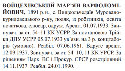Мар'ян Войцехівський розстріляний 14.11.1937 р.