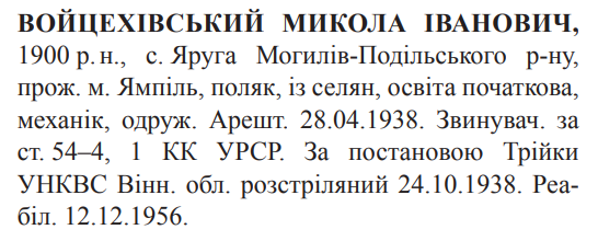 Реабілітований: Вінницьким облсудом 12.12.1956 Реабілітовані історією