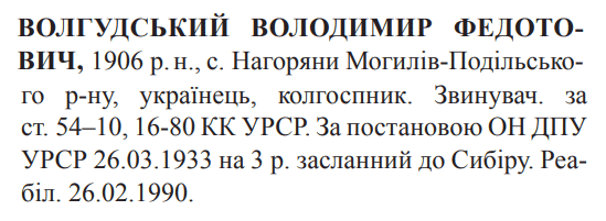 (Можливий варіант написання прізвища: Волгуцький) Реабілітовані історією