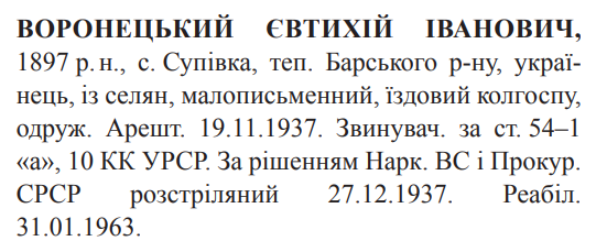 Євтихій Воронецький розстріляний 27.12.1937