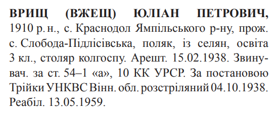(Можливий варіант написання прізвища: Вжещ, Врещ) Реабілітовані історією