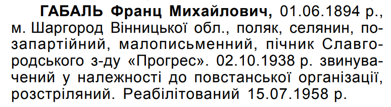 Реабілітований: 15.07.1958 Реабілітовані історією