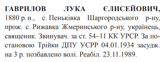 54-11 КК УССР. Судовою трійкою при комісії ГПУ УССР засуджений до 3 років позбавлення волі