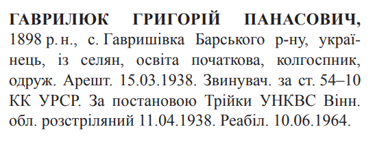 Реабілітований: Вінницьким облсудом 10.06.1964 Реабілітовані історією