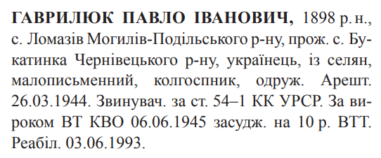 Реабілітований: Вінницьким облпрокурором 03.06.1993 Реабілітовані історією