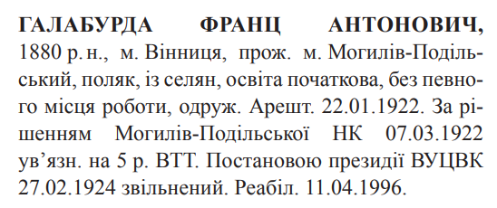 Реабілітований: Вінницькою облпрокуратурою 11.04.1996 Реабілітовані історією