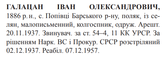 Іван Галацан розстріляний 02.12.1937
