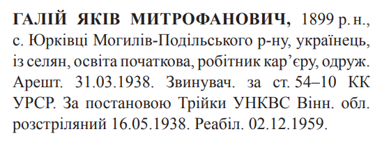 Реабілітований: Вінницьким облсудом 02.12.1959 Реабілітовані історією
