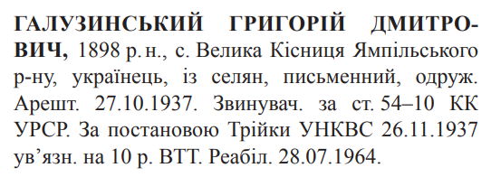 Реабілітований: Вінницьким облсудом 28.07.1964 Реабілітовані історією
