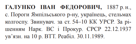 Реабілітований: 30.11.1989 Реабілітовані історією