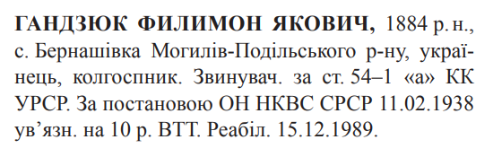 Реабілітований: 15.12.1989 Реабілітовані історією