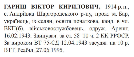Реабілітований: Військовою прокуратурою Центрального регіону України 27.06.1995 Реабілітовані історією