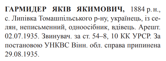 54-8, 54-10 КК УССР. Вінницьким УНКВС справу припинено