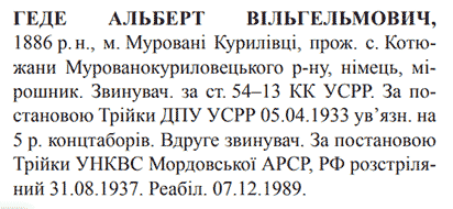 Альберт Геде розстріляний 31.08.1937