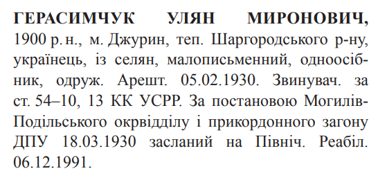 Улян Герасимчук розстріляний 04.11.1937 р.