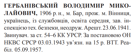 54-6 КК УССР. ОН НКВД СССР засуджений до 15 років ВТТ