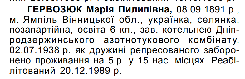 (Можливий варіант написання прізвища: Гервозюк) Реабілітовані історією