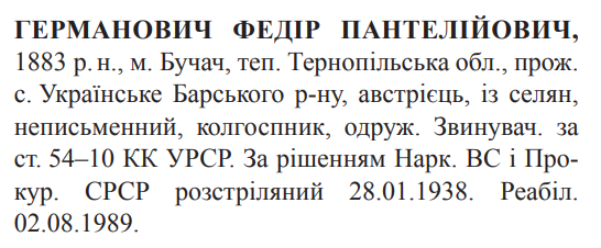 Федір Германович розстріляний 28.01.1938