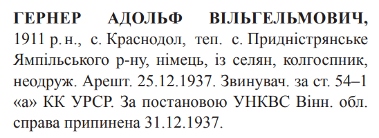 54-1 "а" КК УССР. Вінницьким УНКВС справу припинено