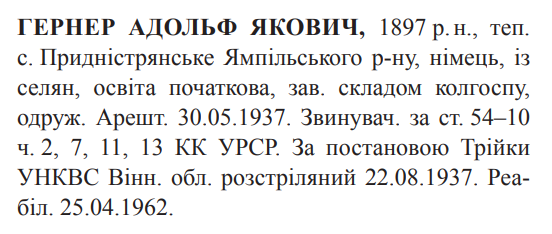 Адольф Гернер розстріляний 22.08.1937