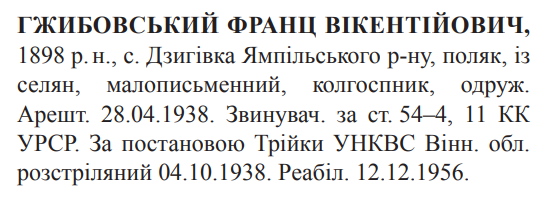 Франц Гжибовський розстріляний 04.10.1938