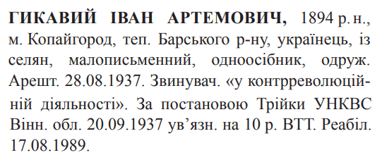 інформація відсутня. Трійкою УНКВС Вінницької обл. засуджений до 10 років ВТТ