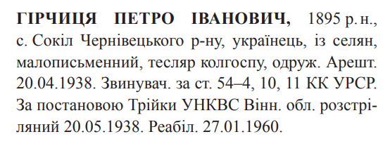 Реабілітований: Вінницьким облсудом 27.01.1960 Реабілітовані історією