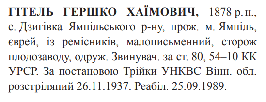 Реабілітований: Вінницькою облпрокуратурою 25.09.1989 Реабілітовані історією