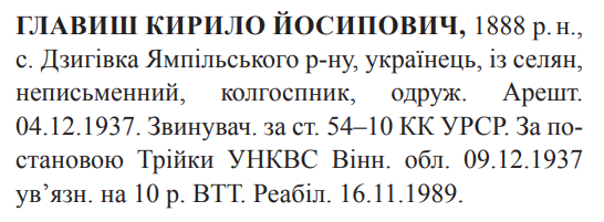 54-10 КК УССР. Трійкою УНКВС Вінницької обл. засуджений до 10 років ВТТ