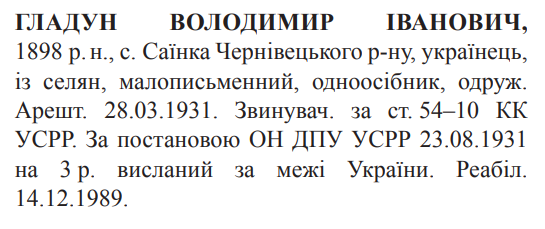 54-10 КК УССР. Трійкою при Колегії ГПУ УССР засуджений до 3 років вислання
