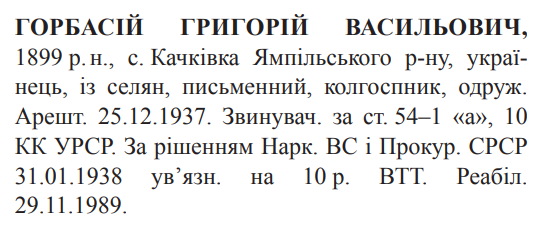 Реабілітований: Вінницьким облпрокурором 29.11.1989 р. Реабілітовані історією