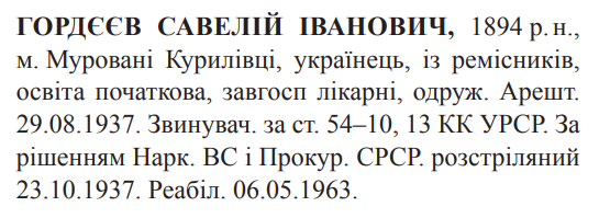 Савелій Гордїїв розстріляний 23.10.1937