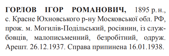 Реабілітований: Могилів-Подільським районним відділом НКВС 16.01.1938 Реабілітовані історією